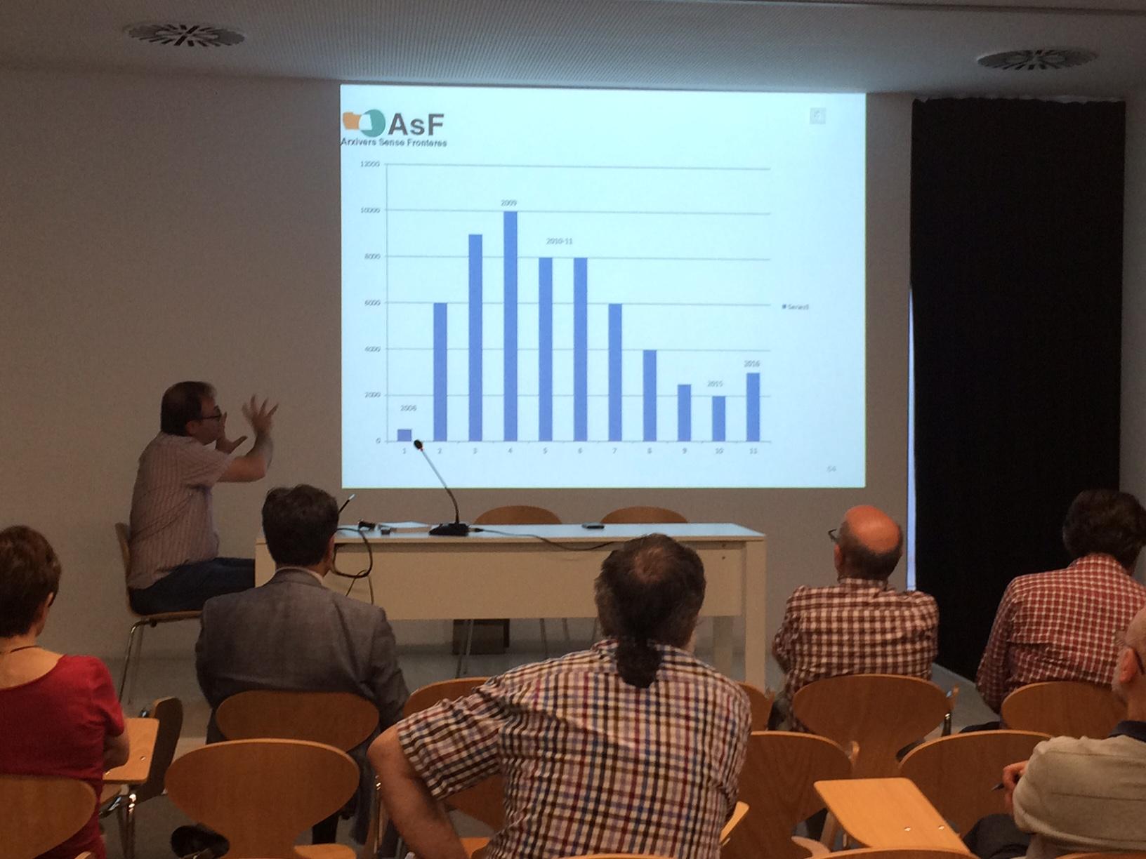 Jordi Amigó, responsable del projecte de suport a l'Arxiu Nacional Saharaui d'AsF, ens va explicar quines eren les principals línies d'actuació i quins eren els resultats que n'havien obtingut. L'Arxiu Nacional Saharaui és la màxima expressió de la identitat d'aquest poble, ja que aplega tota la documentació que ha generat la RASD des de la seva constitució l'any 1976, esdevenint així el principal testimoni de la seva existència.