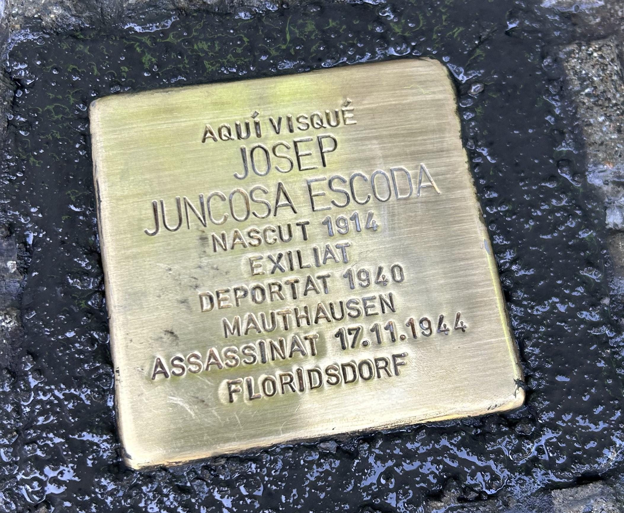 Col·locació de la llamborda (Stolperstein) en memòria de Josep Juncosa Escoda