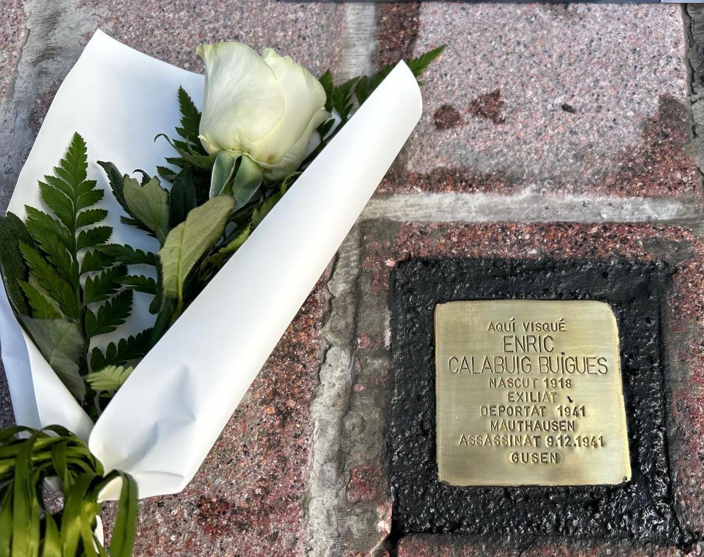 El divendres 14 de març a les 17:00h, al carrer Batan 28, s'ha col·locat una llamborda en record d’Enric Calabuig i Buigues. Nascut l’any 1918 a Gandia, de ben jove es va establir a Reus, on hi van néixer els seus altres germans. Junt amb el seu pare fou treballador de la Serradora de Cal Rodón. Era també un gran amant de la música. A l'exili, fou forçat a allistar-se a les Companyies de Treballadors Estrangers –en concret, a la núm. 140– . Fou capturat per l'exèrcit alemany. L'abril de 1941 va ser deportat al camp de Mauthausen. Al cap de poc mesos, fou traslladat al camp satèl·lit de Gusen on fou assassinat el 9 de desembre de 1941.