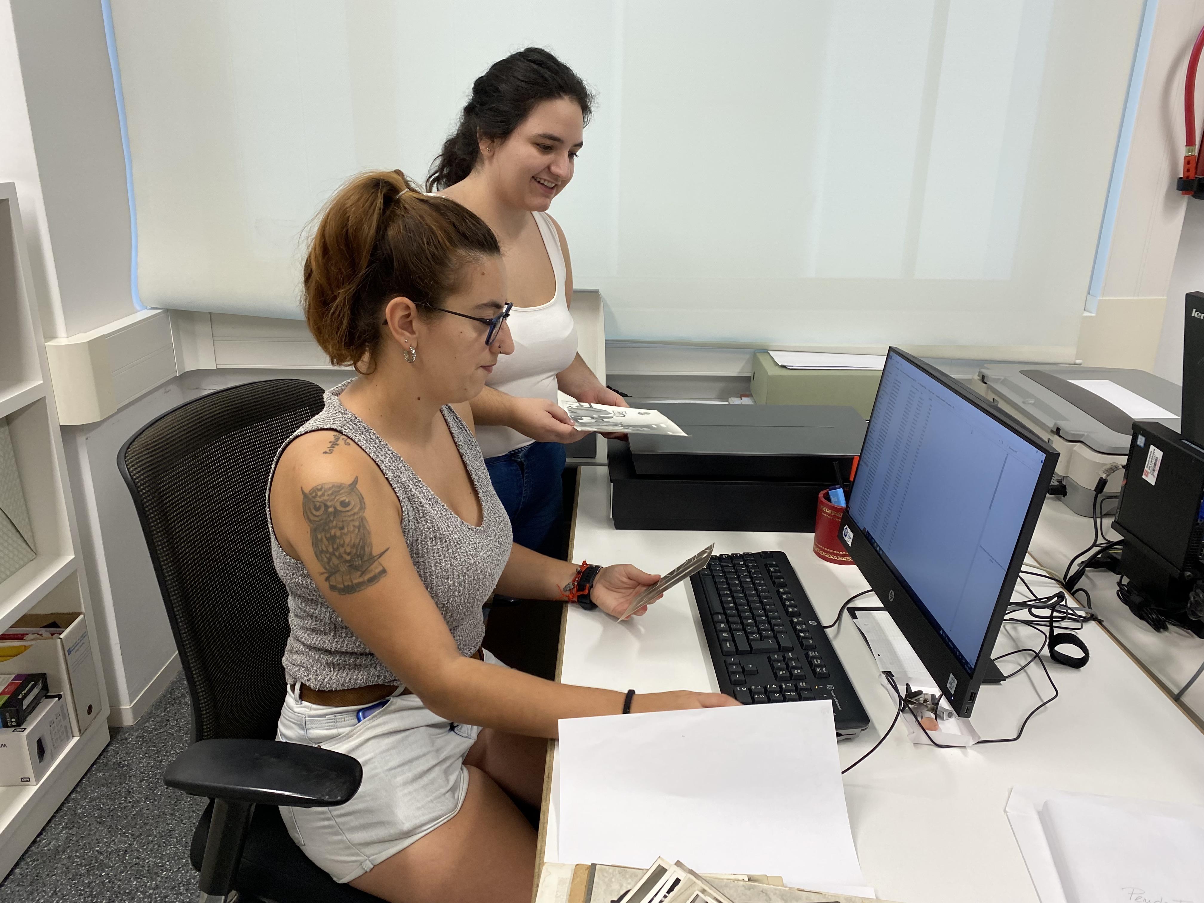 La Saray i la Sandra, dues alumnes del curs d'operacions auxiliars d'enregistrament i tractament de dades i documents (SOC) han realitzat, aquest estiu, les seves pràctiques a l'Arxiu Municipal de Reus.