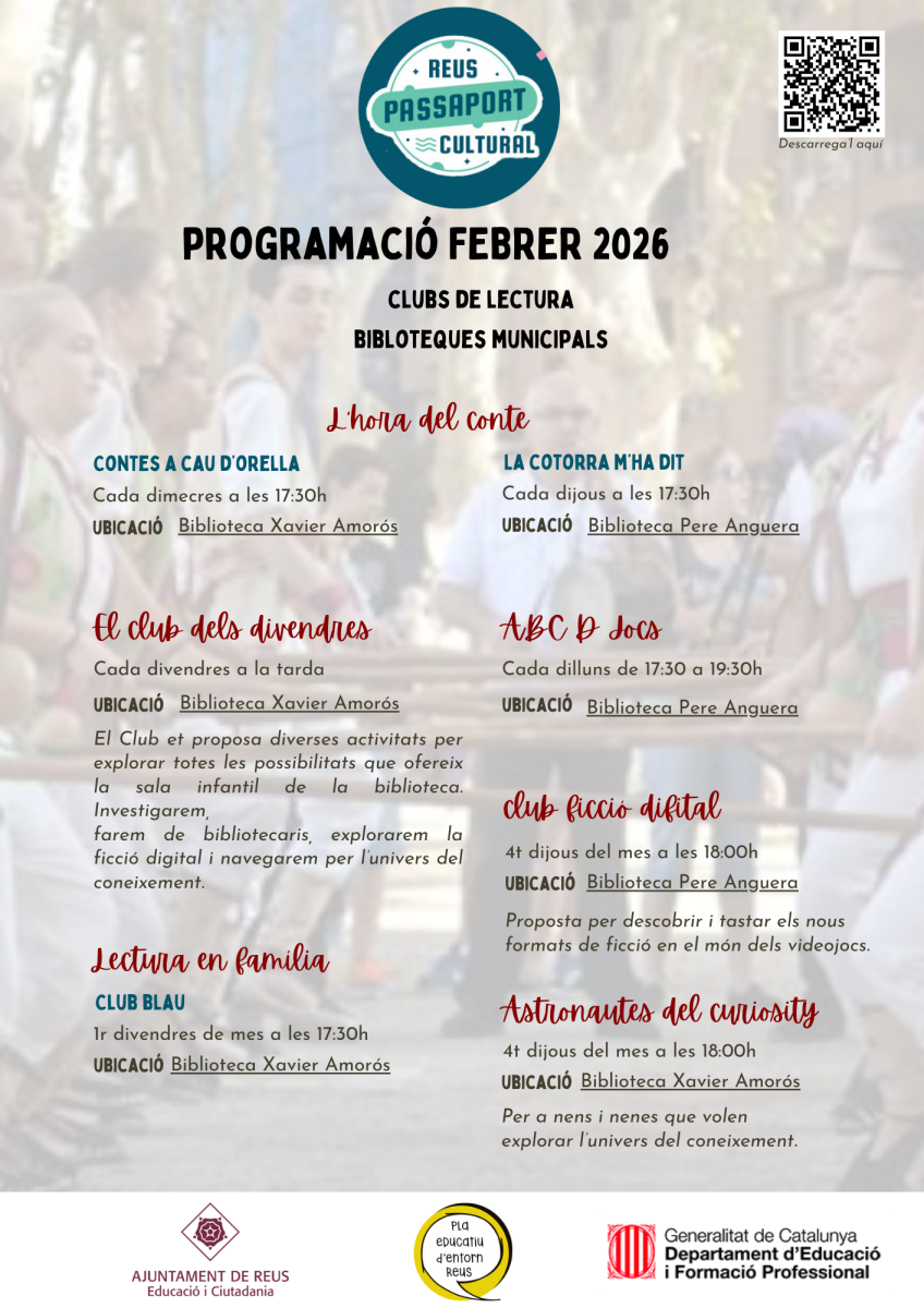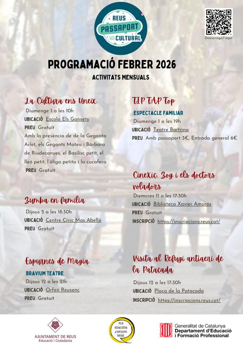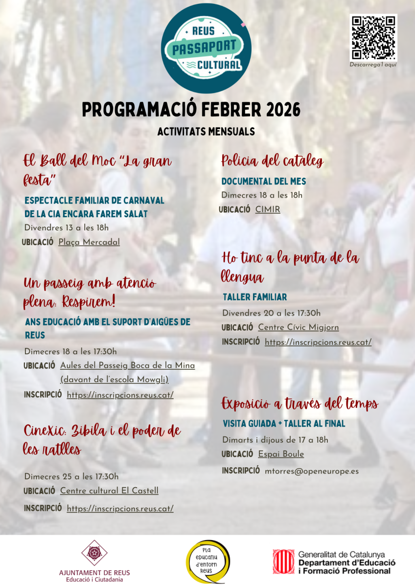 El Pasaporte Cultural es un proyecto del Ayuntamiento de Reus que crea oportunidades educativas, de acreditación y reconocimiento social para aprendizajes realizados fuera de la escuela. La idea es capturar y divulgar la potencia educativa de nuestro territorio.