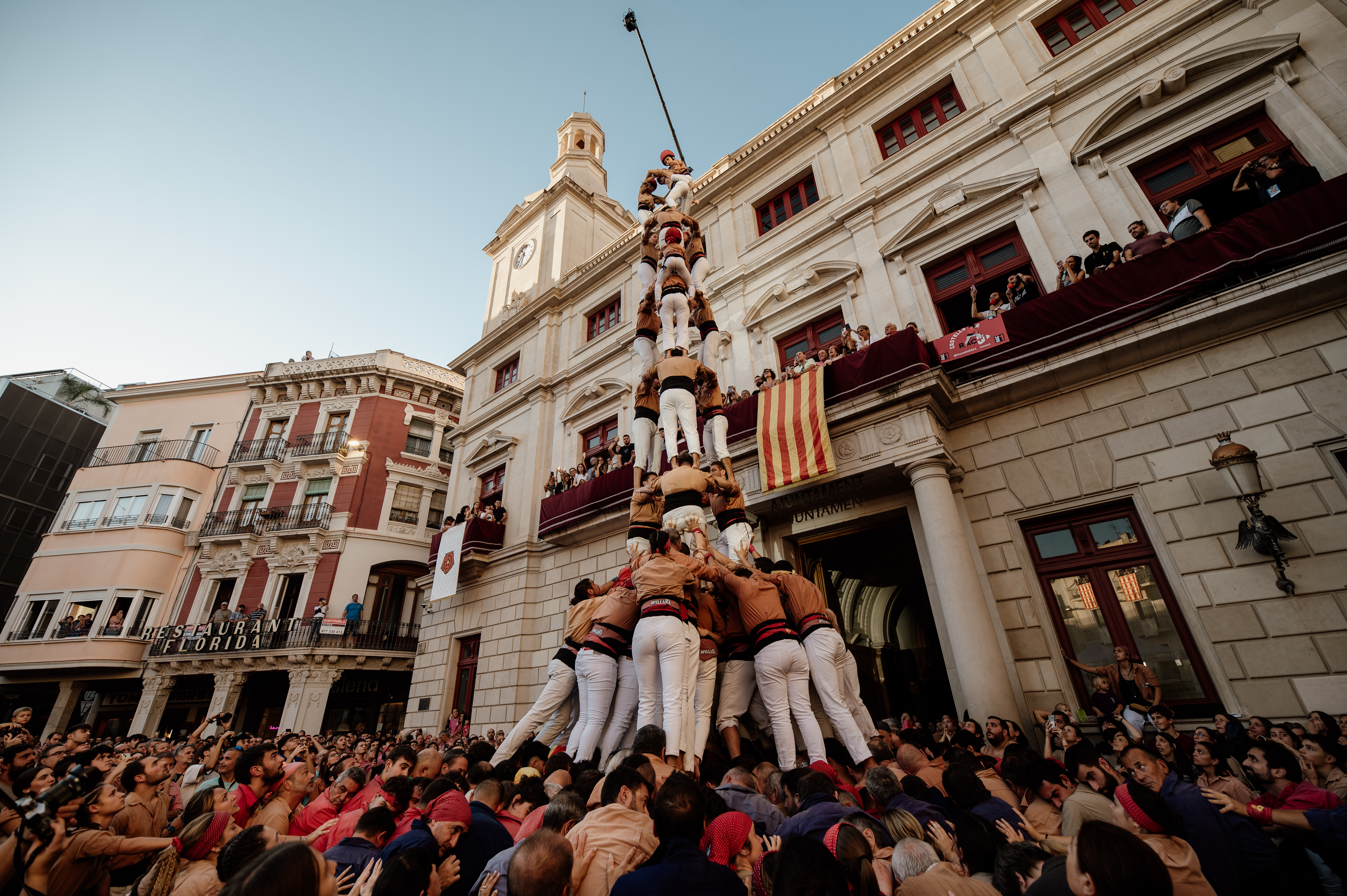 La Colla Vella dels Xiquets de Valls ha començat amb un 5de9 amb folre descarregat, seguit d'un 4de9 sense folre i un intent de 9de9 amb folre.