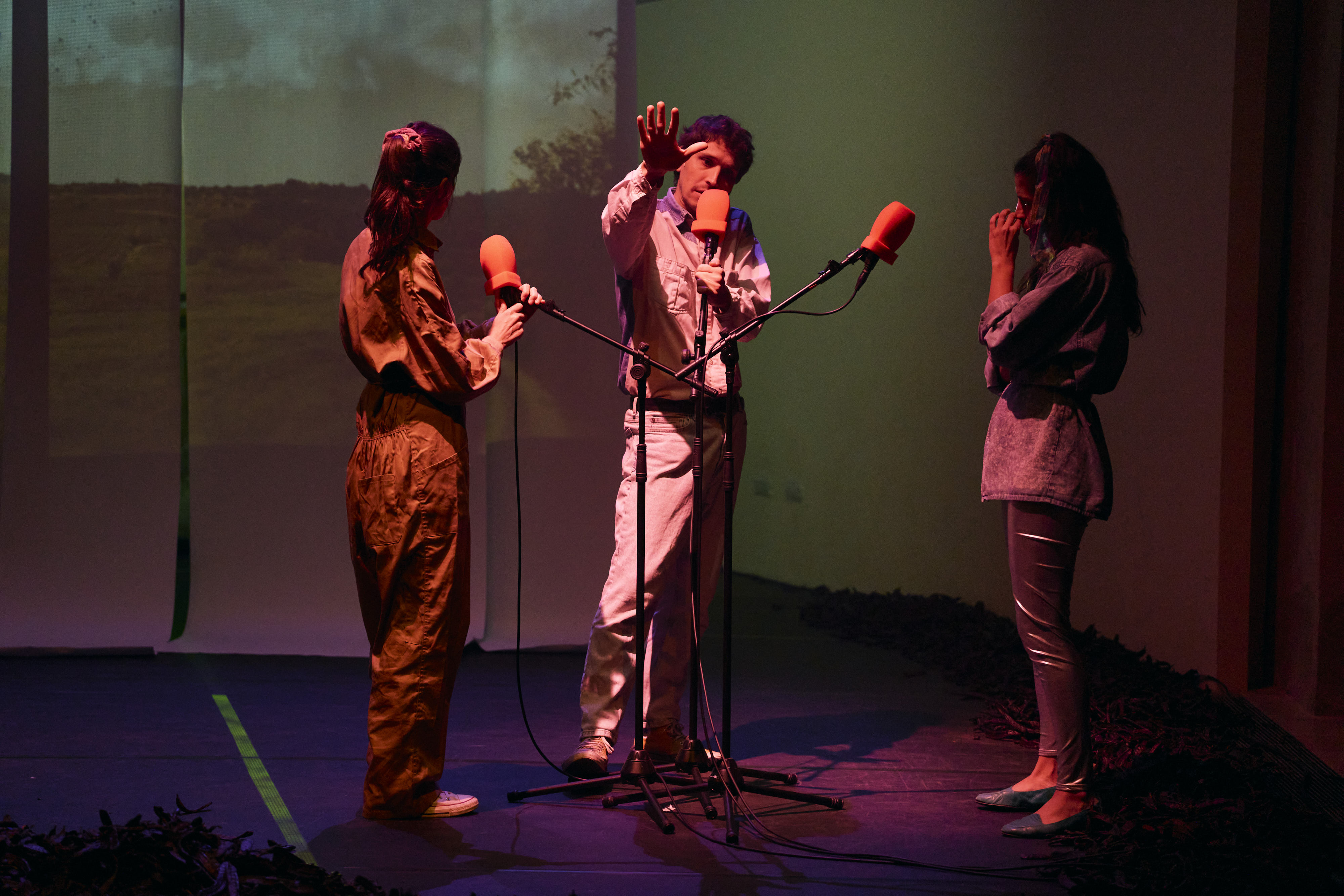 Tot passa al voltant d'una taula, que és un estudi de ràdio, on diferents veus dibuixen un paisatge que parteix de dues explosions simultànies: les de l’atemptat d'Enpetrol la nit del 12 de juny de 1987. Sense mòbils, sense internet, l'únic fil que lliga la població i que va generant una xarxa són les ones de la ràdio. És on les veïnes truquen per dir que estan bé, per informar-se de què han de fer, per preguntar pels seus familiars, per explicar què estan veient i què estan sentint. Per sentir-se acompanyats, per espolsar-se una mica la por, per compartir-la i que sigui menys intensa.