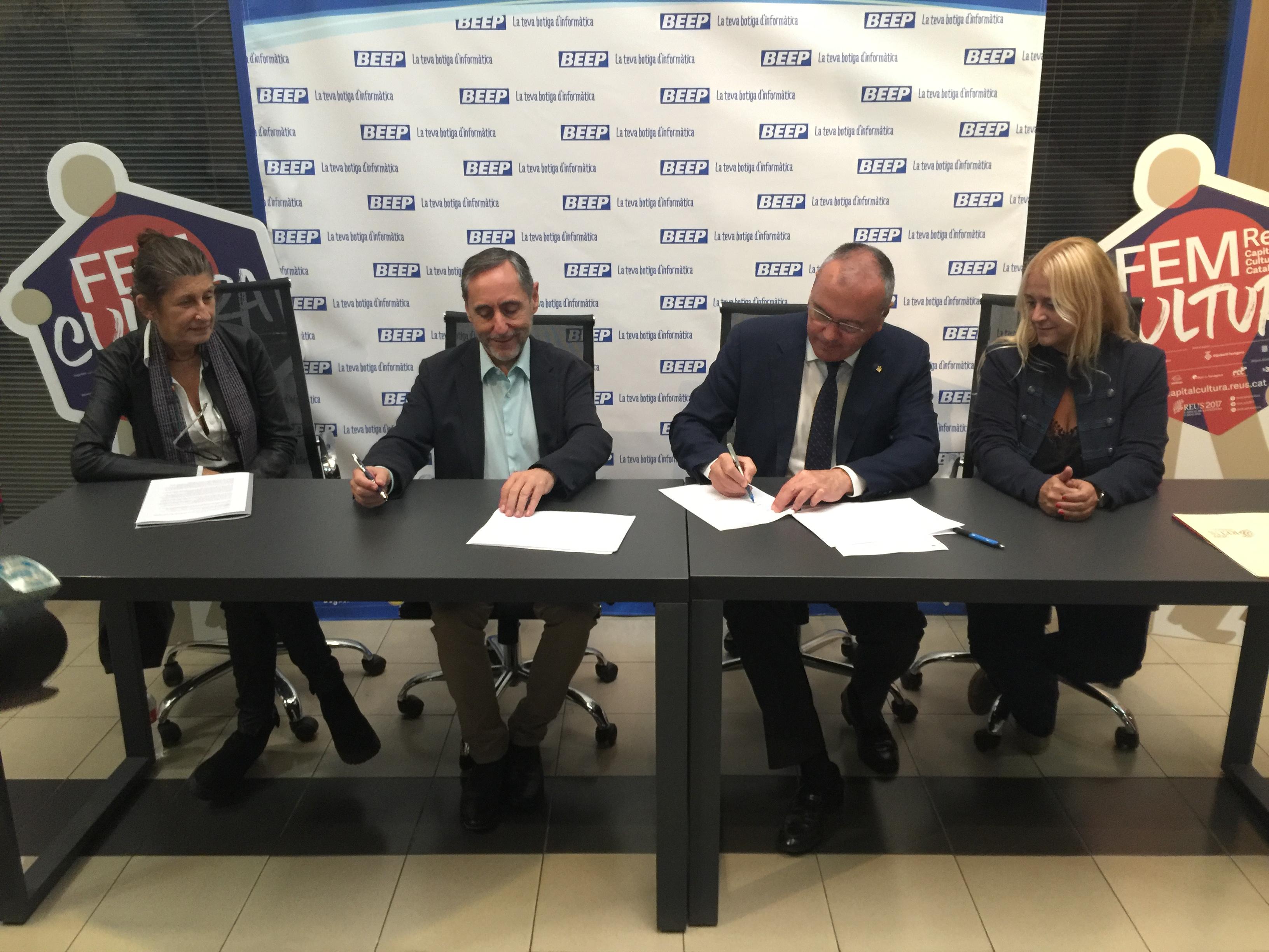 L’empresa reusenca BEEP Informatica, del grup Ticnova, amb més de 400 botigues i que comercialitza productes informàtics i tecnològics per particulars, “pimes” y educació sota la marca BEEP, ha cedit a l’Ajuntament de Reus la seva col·lecció d’art tecnològic perquè sigui exposada al Museu de Reus coincidint amb la Capital de la Cultura Catalana Reus 2017. L'alcalde, Carles Pellicer, i el president de Beep Informàtica, Andreu Rodríguez, han signat aquest dimecres el conveni de col·laboració que preveu una exposició d'aquest fons al Museu de Reus del 23 de novembre de 2017 al 3 de març de 2018.