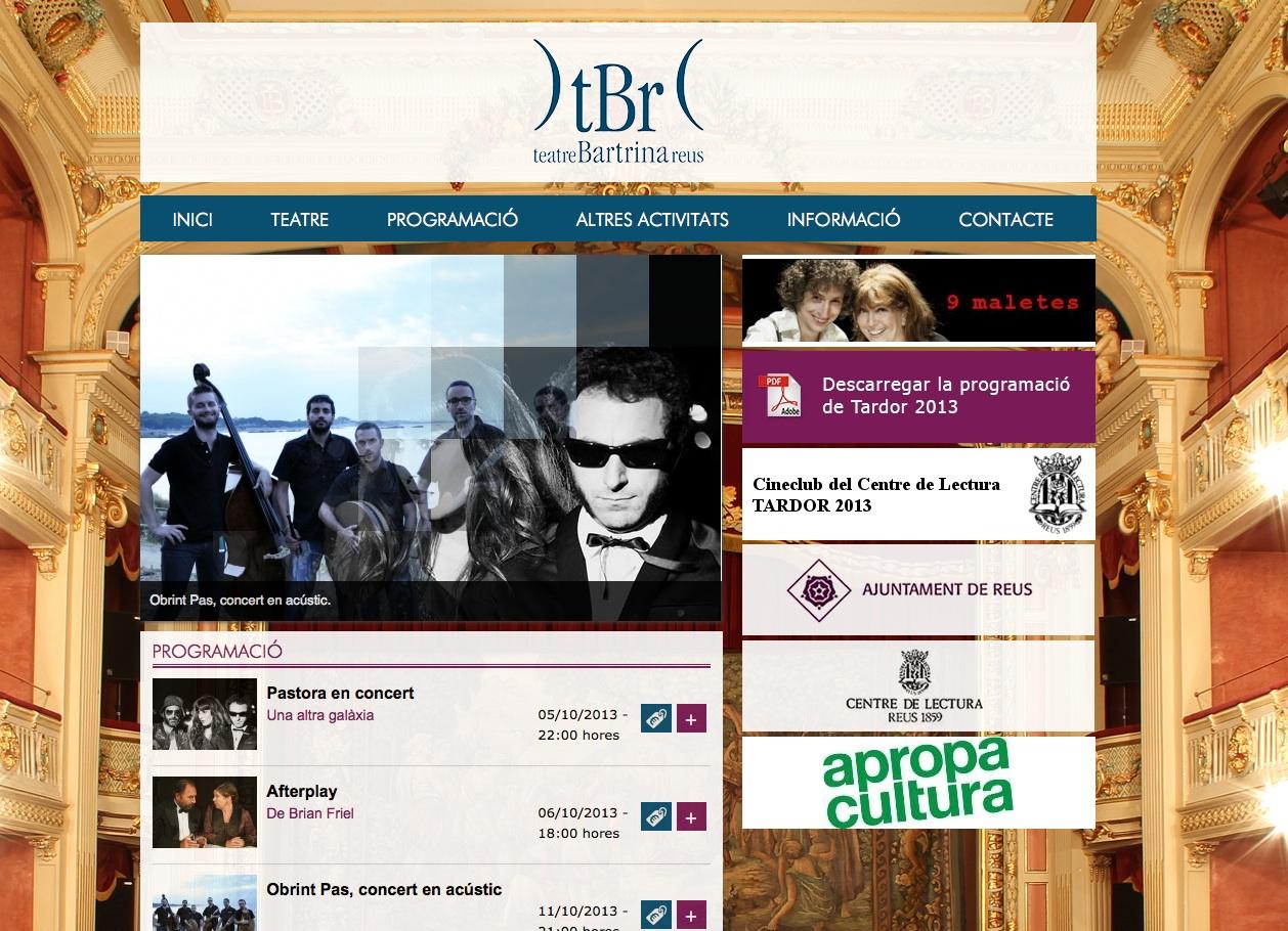 Teatrebartrina.cat ofereix una agenda amb tota la programació del teatre, i informacions d’utilitat sobre descomptes, abonaments i entrades, entre d’altres.