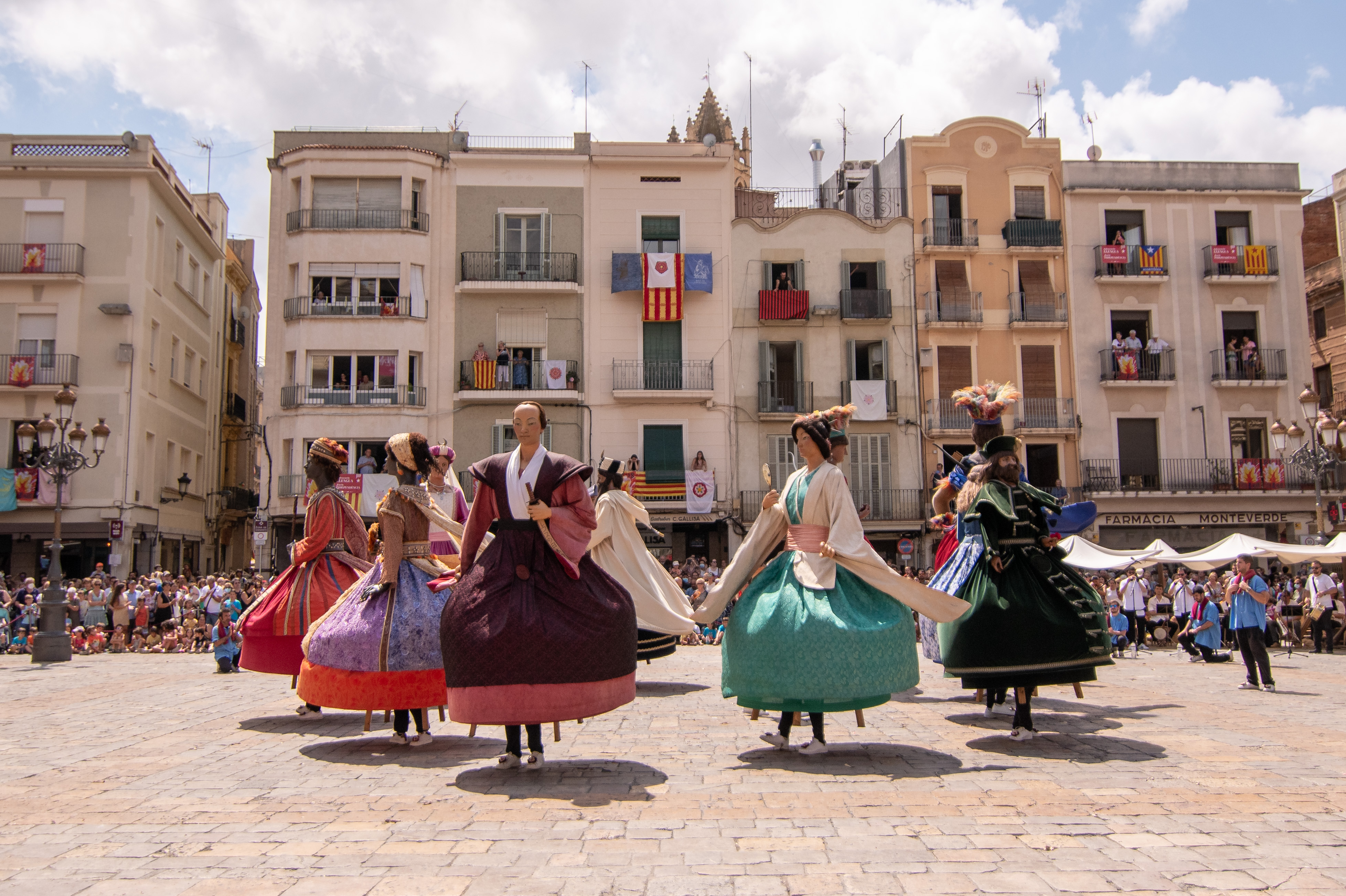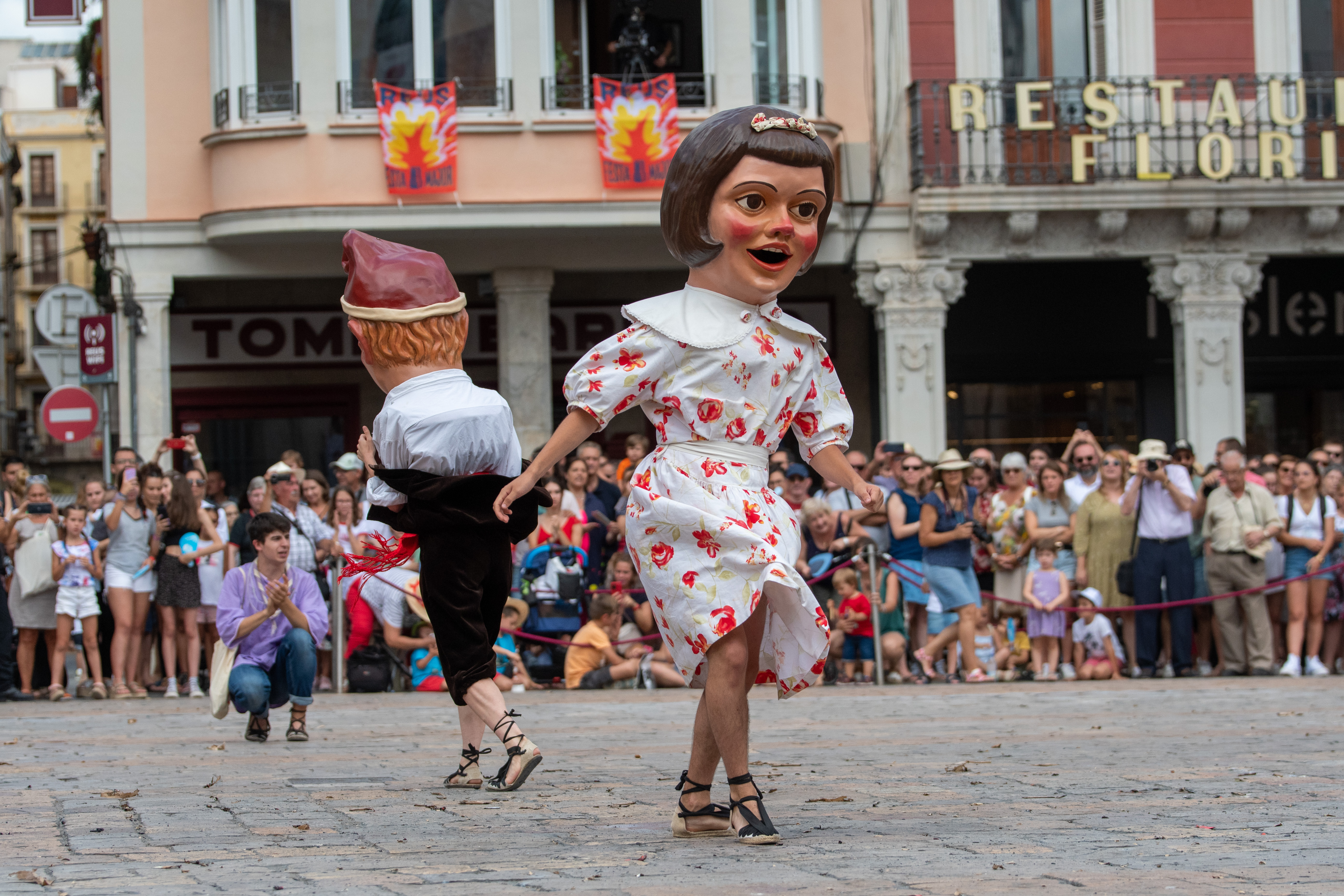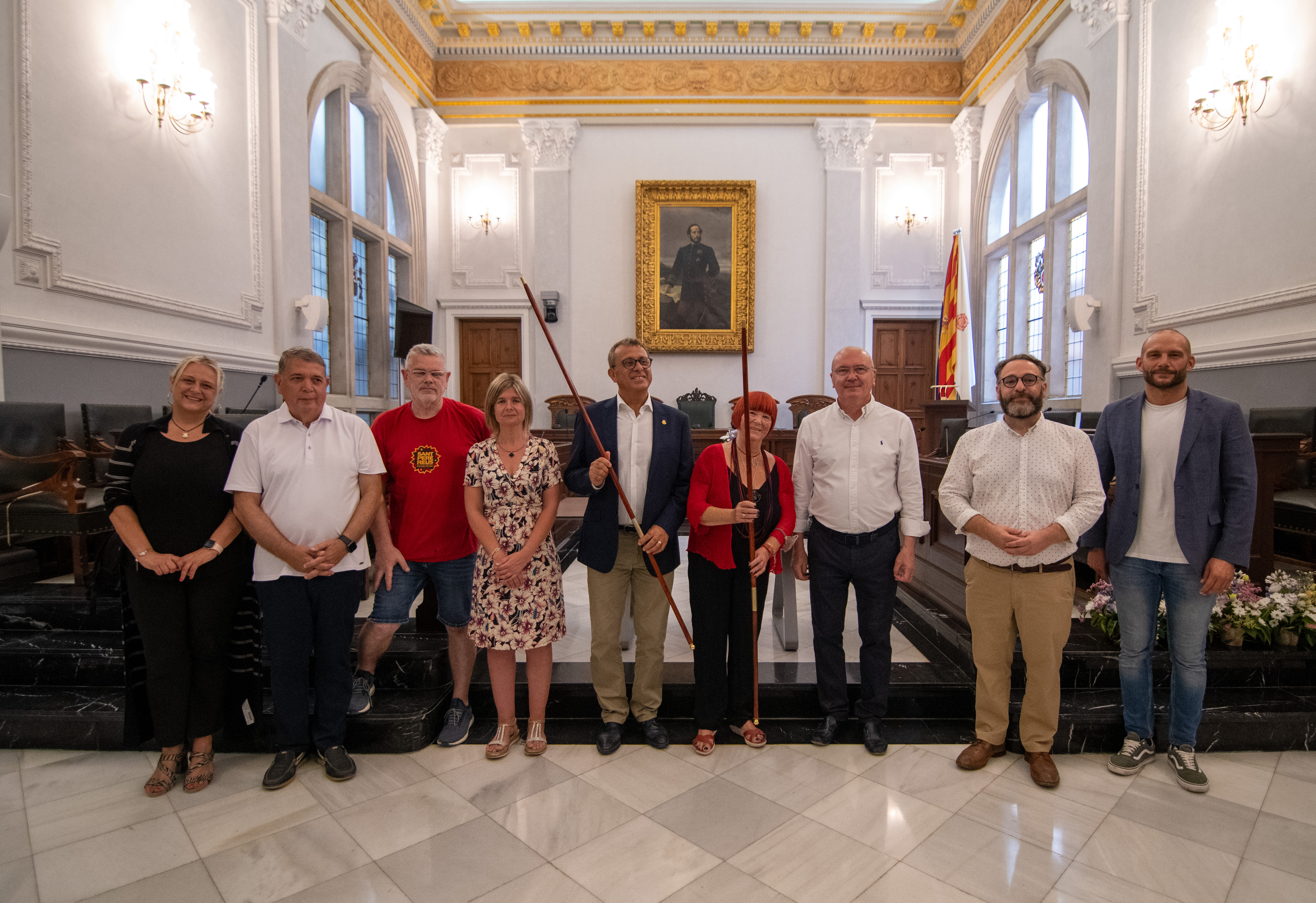Posteriorment, la plaça del Mercadal ha estat l'escenari de l’actuació de lluïment dels grups festius de la ciutat, precedida del Bou enflocat, una antiga tradició de Reus i de diversos punts d’Europa que consisteix en guarnir un bou amb flors i cintes amb motiu d’una festa assenyalada. Finalment, l’exhibició castellera dels Xiquets de Reus ha tancat els actes del matí de Sant Pere.
