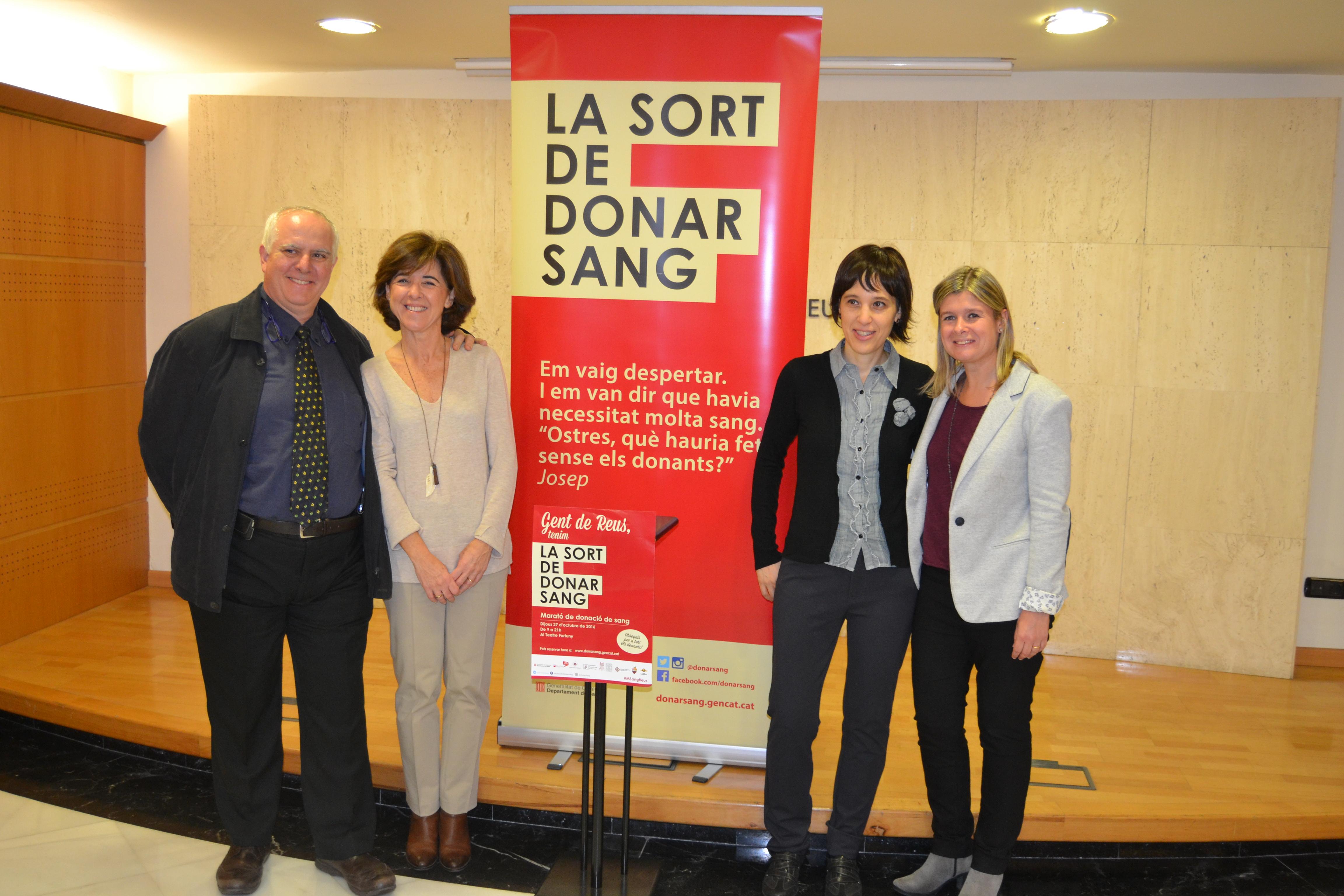 La regidora de Salut de l'Ajuntament de Reus, Noemí Llauradó; la directora territorial a la zona de Tarragona del Banc de Sang i Teixits, la doctora Virginia Callao; el vicepresident de l'Associació de Donants de Sang del Baix Camp, Pere Líndez, i una persona receptora de sang com a pacient, Fina Jansà, han presentat la nova edició de la marató, que vol superar el volum de sang recollida i el nombre de donants de l'edició de l'any passat.