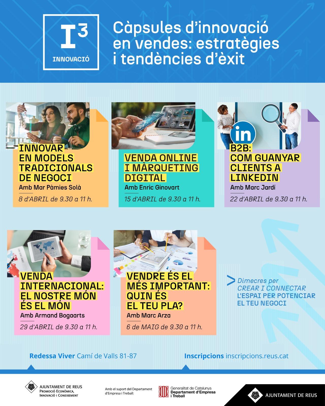L’Ajuntament de Reus posa en marxa una nova edició del programa “Dimecres per crear i connectar. L’espai per potenciar el teu negoci”, centrada específicament en la innovació en vendes, amb l’objectiu d’ajudar autònoms i micropimes a millorar les seves estratègies comercials, adaptar-se als nous canals i incrementar la seva competitivitat.