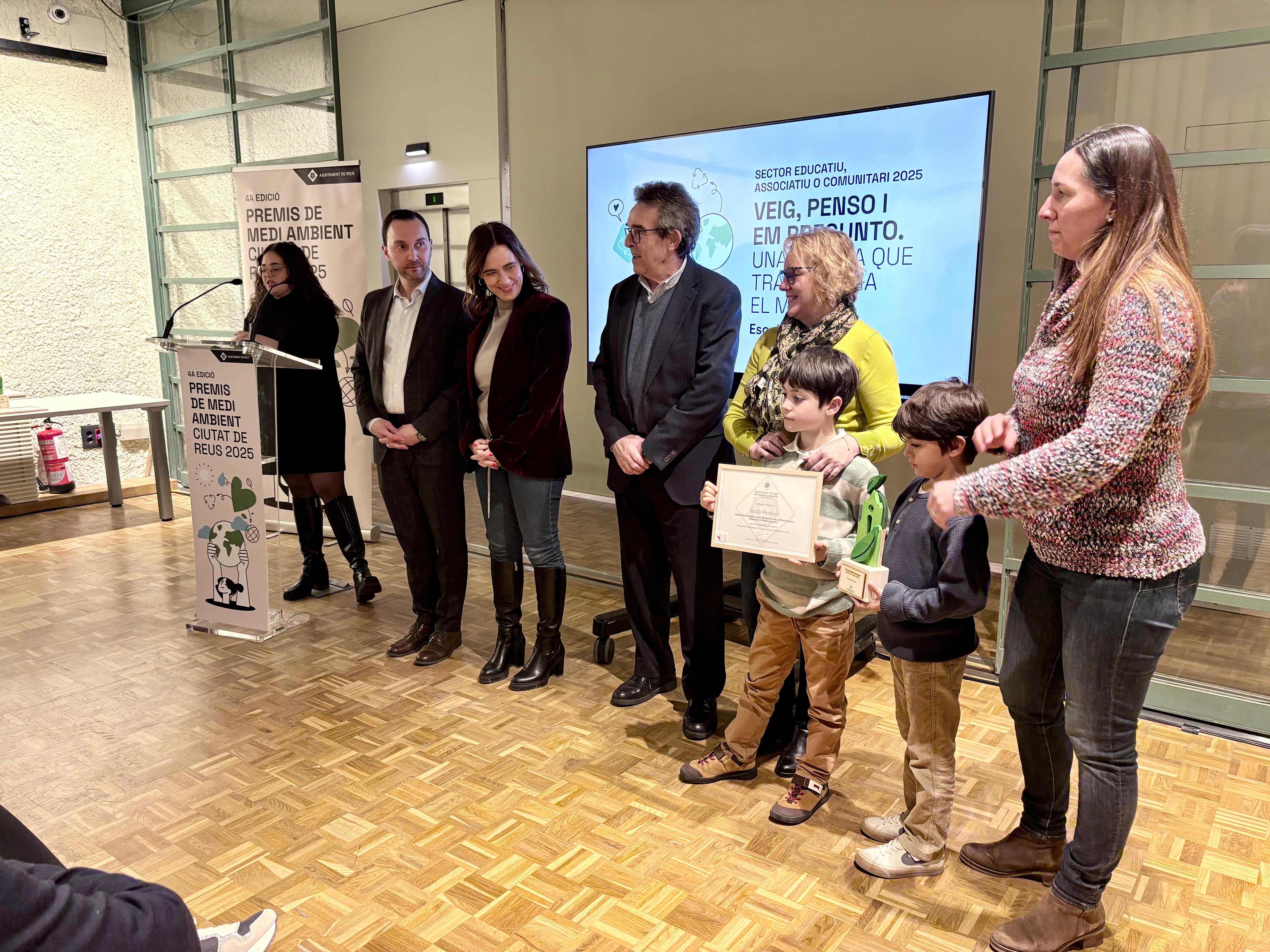 L’Ajuntament de Reus ha lliurat aquesta tarda els Premis de Medi Ambient Ciutat de Reus, corresponents a la convocatòria de 2025, en un acte presidit per l’alcaldessa de Reus, Sandra Guaita i el regidor de l’àrea de Medi Ambient, Sostenibilitat i Via Pública, Daniel Rubio, que ha comptat amb la presència d’altres regidors de la corporació i representants del sector econòmic, associatiu i comunitari de la ciutat.