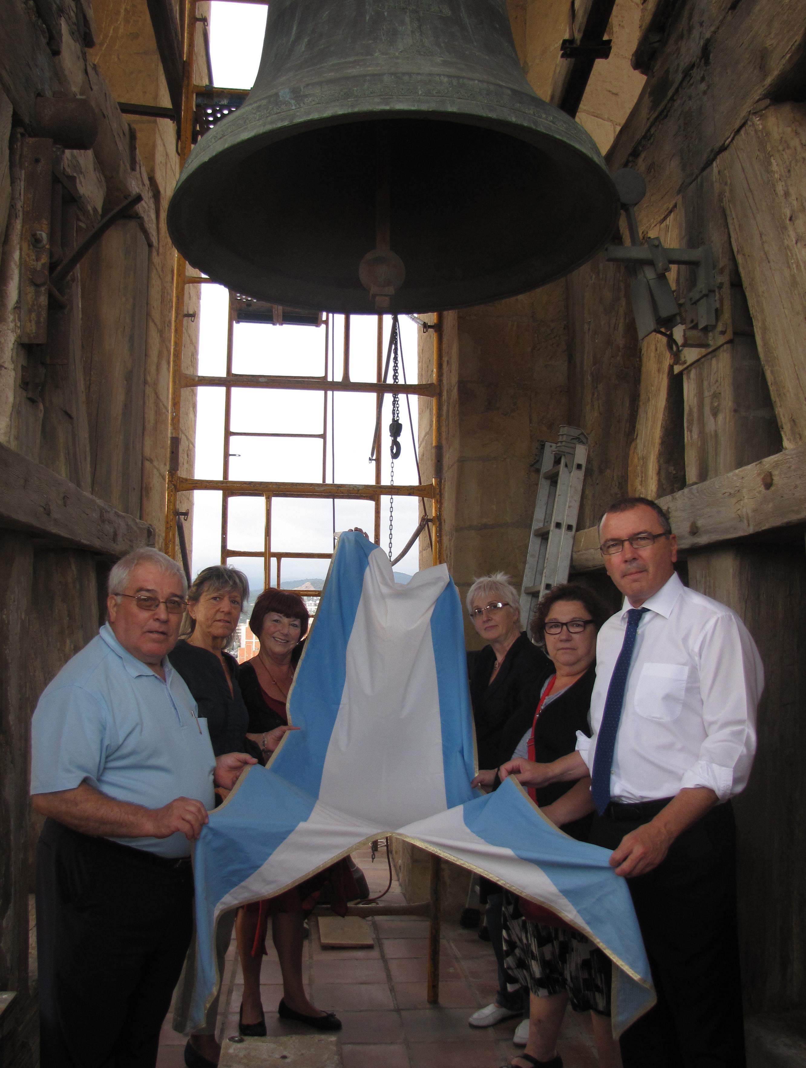 alde de Reus, Carles Pellicer, el regidor de Cultura, Joaquim Sorio, i representants del Grup de Misericòrdies, conjuntament amb el Prior, han assistit a l’hissada de la bandera Mariana a la Prioral de Sant Pere.