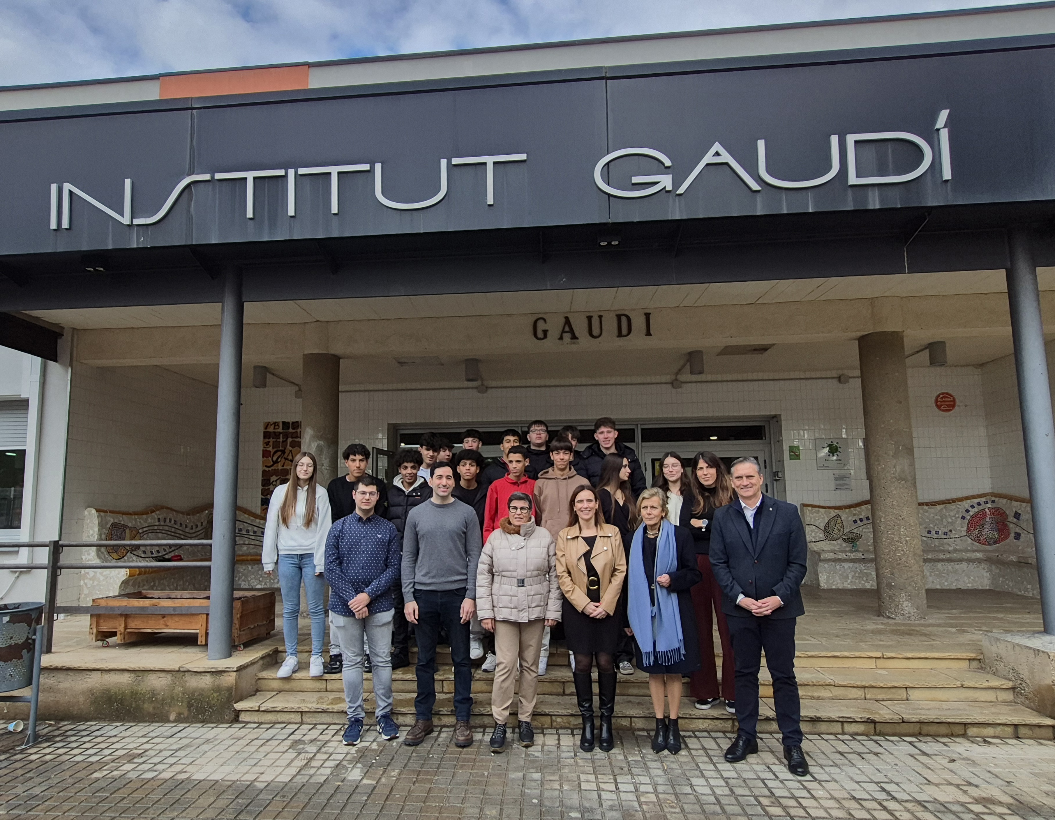 Aquest dimecres, 17 de desembre, l’Institut Gaudí ha inaugurat una placa que indica la seva adhesió al programa Escoles Ambaixadores del Parlament Europeu, que té com a objectiu fomentar el coneixement d'Europa i de la democràcia parlamentària europea entre els joves. En aquesta presentació hi ha assistit Sandra Guaita, alcaldessa de Reus; Marta Domènech, responsable de l’oficina Europe Direct Tarragona, i Albert Maruf, cap d'estudis de l’Institut Gaudí, que ha estat el primer centre educatiu de Reus que s’ha unit al programa.