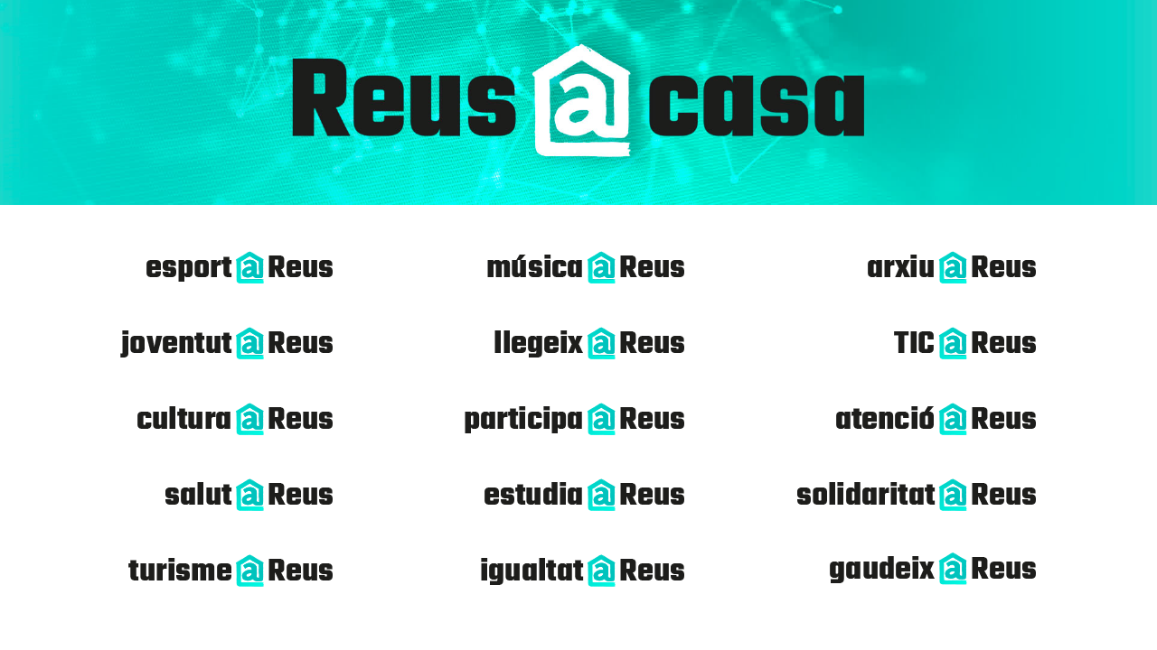 L’Ajuntament de Reus engega el programa d’activitats Reus@Casa pensat per garantir la continuïtat dels serveis a les persones des d’una òptica més 2.0, una proposta variada gràcies a la qual la ciutadania de Reus, que aquests dies s’ha de quedar a casa, podrà continuar gaudint de la cultura, les activitats per a joves, la salut pública, la participació, l’oferta turística i els esports, per exemple.
