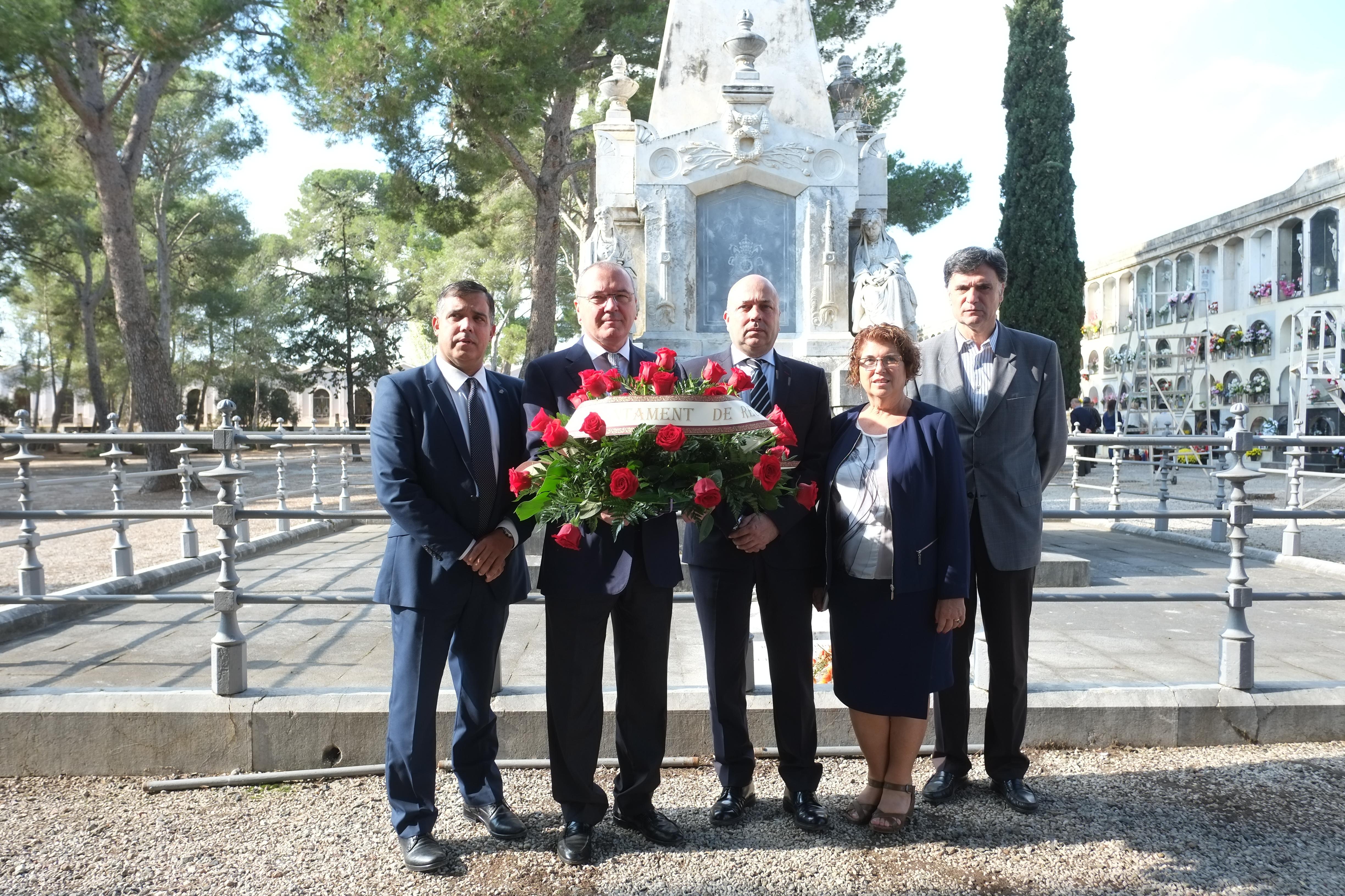 L’alcalde de Reus, Carles Pellicer, acompanyat d'altres membres del consistori i responsables tècnics, ha presidit aquest dimarts 1 de novembre, dia de Tot Sants, a les 11:00h, l’homenatge que l’Ajuntament ret a totes les persones que s’han enterrat al Cementiri General de Reus, amb una ofrena de flors a la tomba dels fills il·lustres.