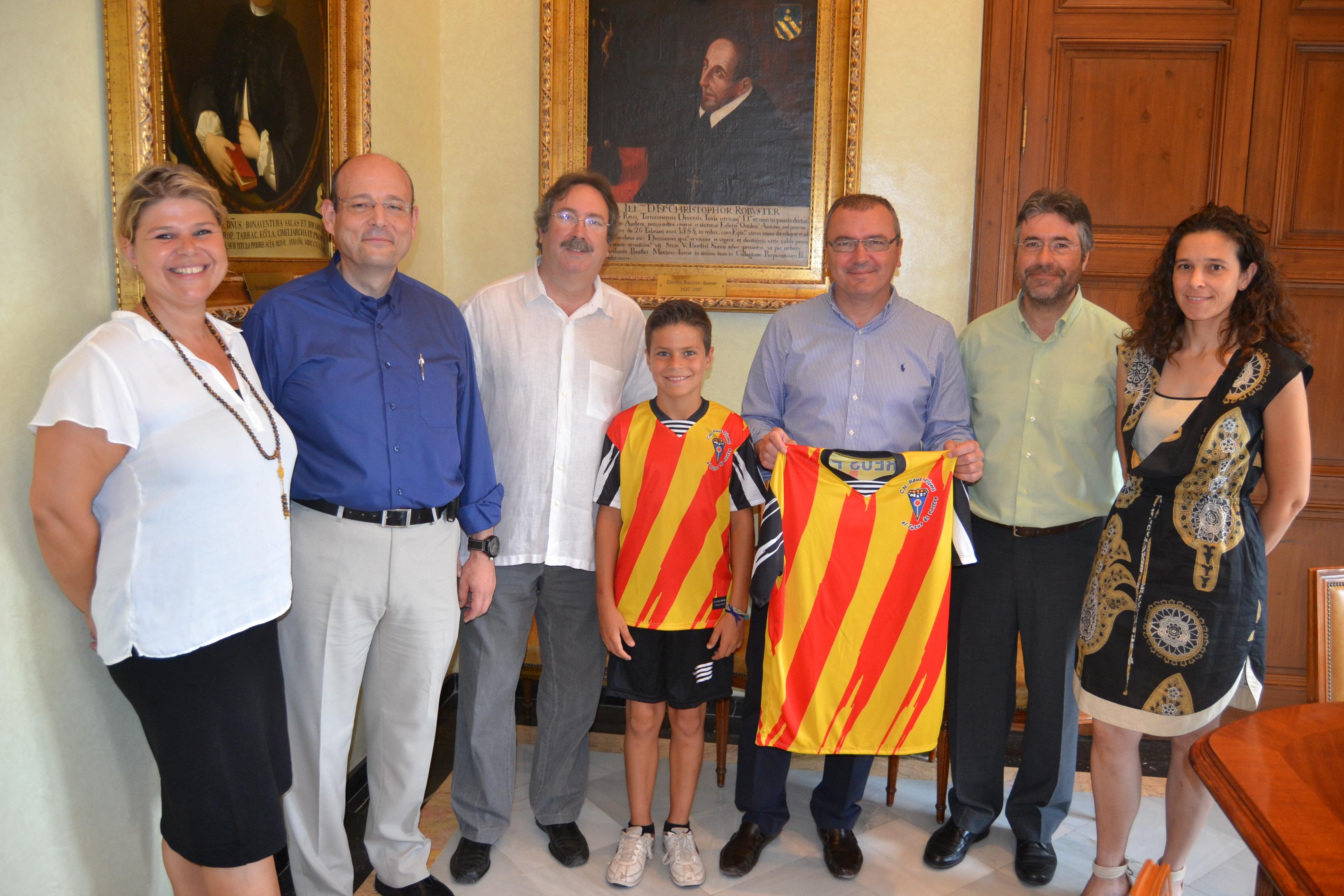 La delegació del club esportiu reusenc ha presentat a l’alcalde el nou equipament esportiu commemoratiu de l’entitat, que està dedicat al 300 aniversari dels fets de 1714. La nova vestimenta la lluiran totes les seccions del club durant les temporades 2013-2014 i 2014-2015.
