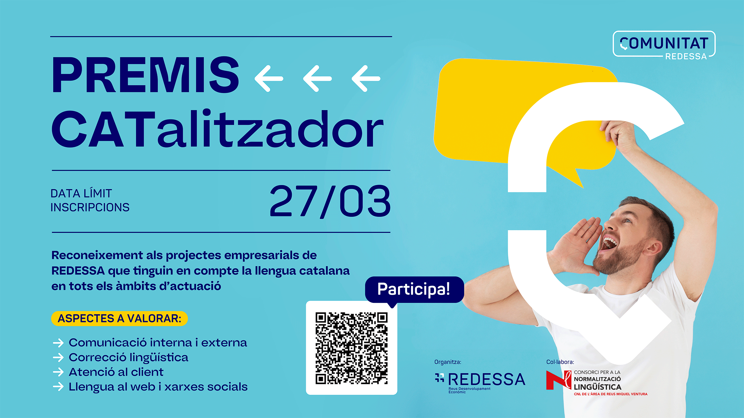 El premi CATalitzador està impulsat per REDESSA i té el suport del Centre de Normalització Lingüística de l’Àrea de Reus Miquel Ventura. Aquesta iniciativa vol reconèixer projectes empresarials dins dels centres d’empresa de REDESSA que promoguin l’ús del català en tots els seus àmbits. El guardó valorarà aspectes com ara la política lingüística en la comunicació interna i externa, la correcció lingüística, els criteris lingüístics per atendre els clients i la llengua d’ús al web i les xarxes socials.