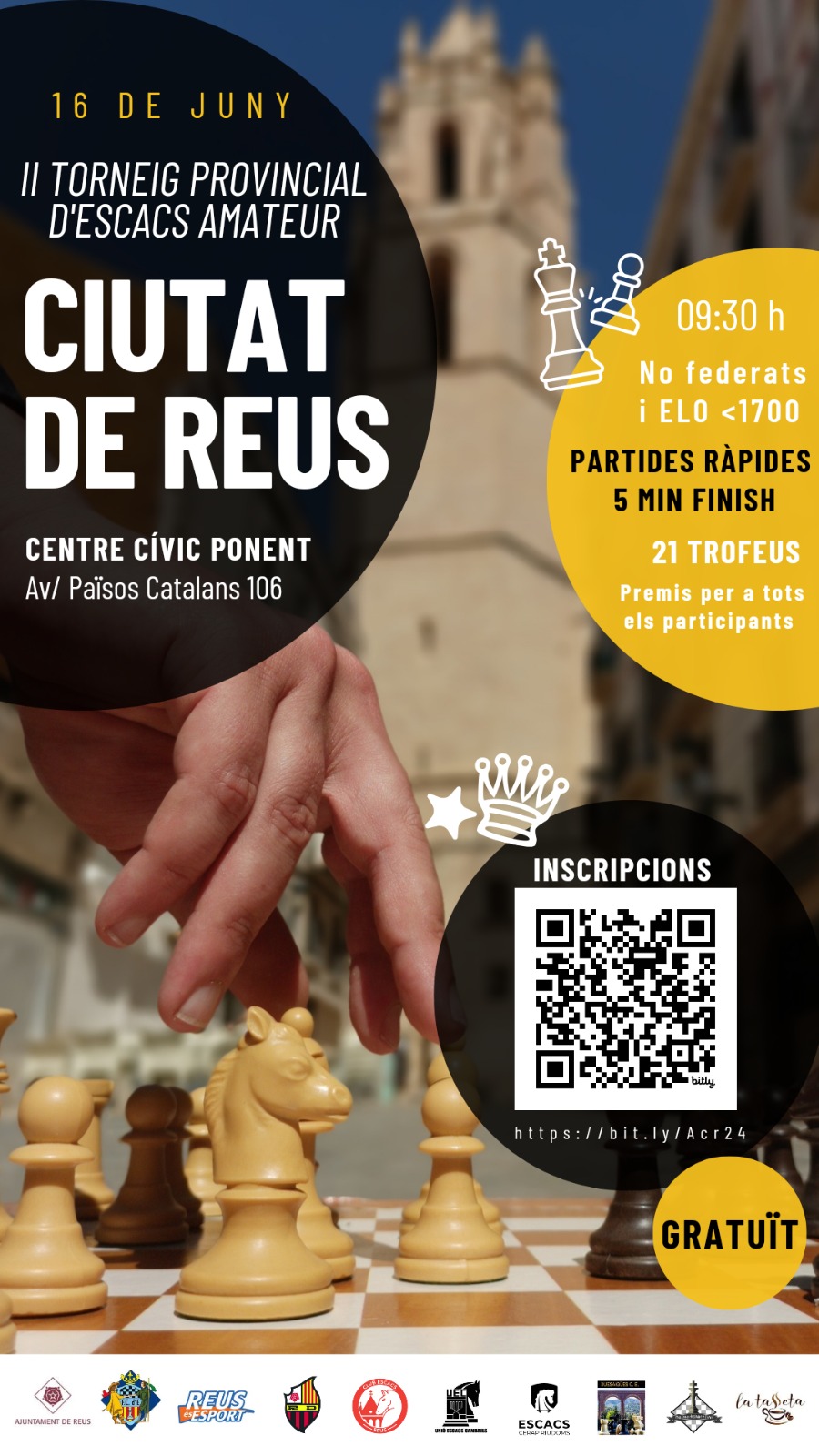 El Centre Cívic Migjorn de Reus acollirà aquest diumenge, 16 de juny, tres tornejos d’escacs que es jugaran simultàniament en el marc de la Festa Provincial dels Escacs 2024 i el II Torneig Ciutat de Reus d’Escacs. Es tracta d’un esdeveniment que organitza la Federació catalana d’escacs amb la col·laboració d l’Ajuntament de Reus, a través de la Regidoria de Salut i Esports i de la regidoria de Relacions Ciutadanes, i els clubs d’escacs del Baix Camp. Les inscripcions en els tornejos van a bon ritme pel que s’espera la participació d’unes 200 persones aficionades als escacs.