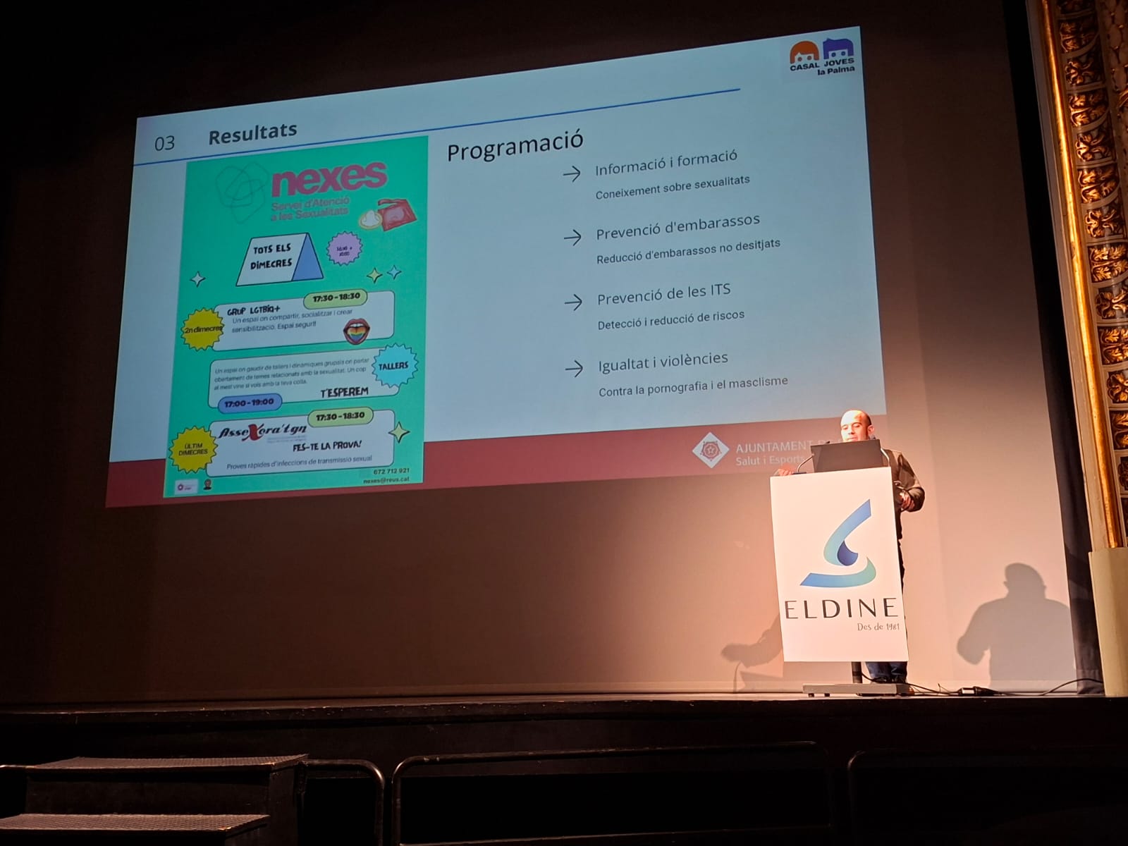 L’Ajuntament de Reus, a través de la regidoria de Salut i Esports, i el Centre MQ han participat aquest 11 de març de 2026 en la cinquena edició de la Jornada Eldine, una trobada d’actualització en patologia per infeccions de transmissió sexual (ITS), que s’ha celebrat al Teatre Bartrina amb la participació de més d’una vintena d’especialistes en salut sexual.