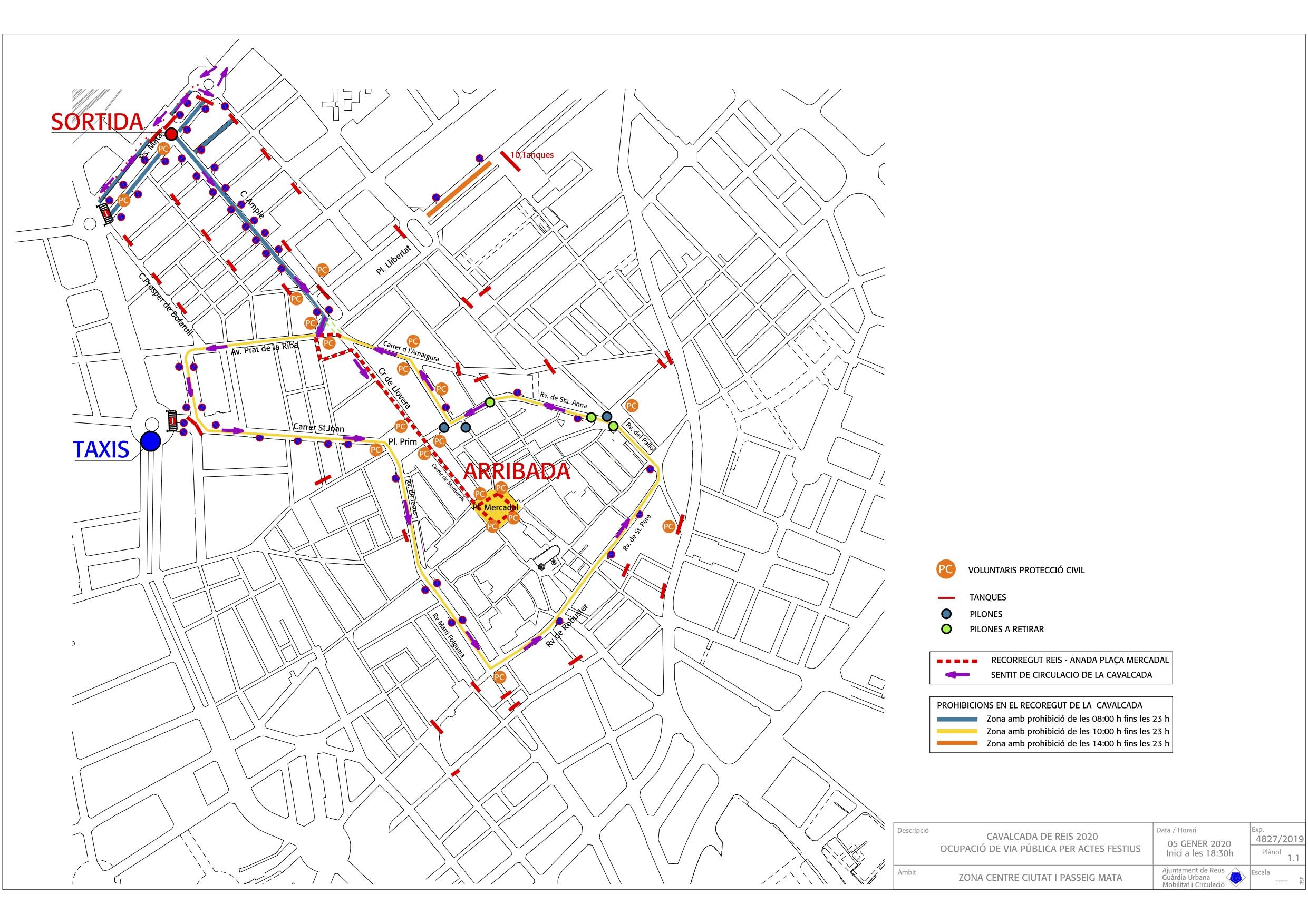 Durant la jornada del 5 de gener es preveuen incidències de mobilitat a tots els carrers i espais públics afectats per la Cavalcada de Reis, tant dels vials per on transcorrerà com per espais adjacents (podeu descarregar-vos el plànol d'afectacions al fitxer adjunt a peu de pàgina).