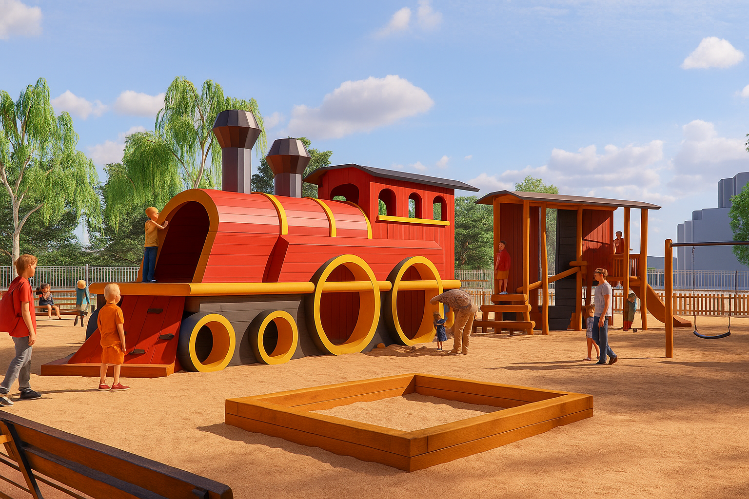En aquest espai s’hi instal·larà properament una emblemàtica gran estructura multijoc en forma de tren, fabricada artesanalment amb fusta de robínia —un material natural, durador i sostenible— que convertirà el parc del Trenet en un espai de referència per al barri i per a tota la ciutat.