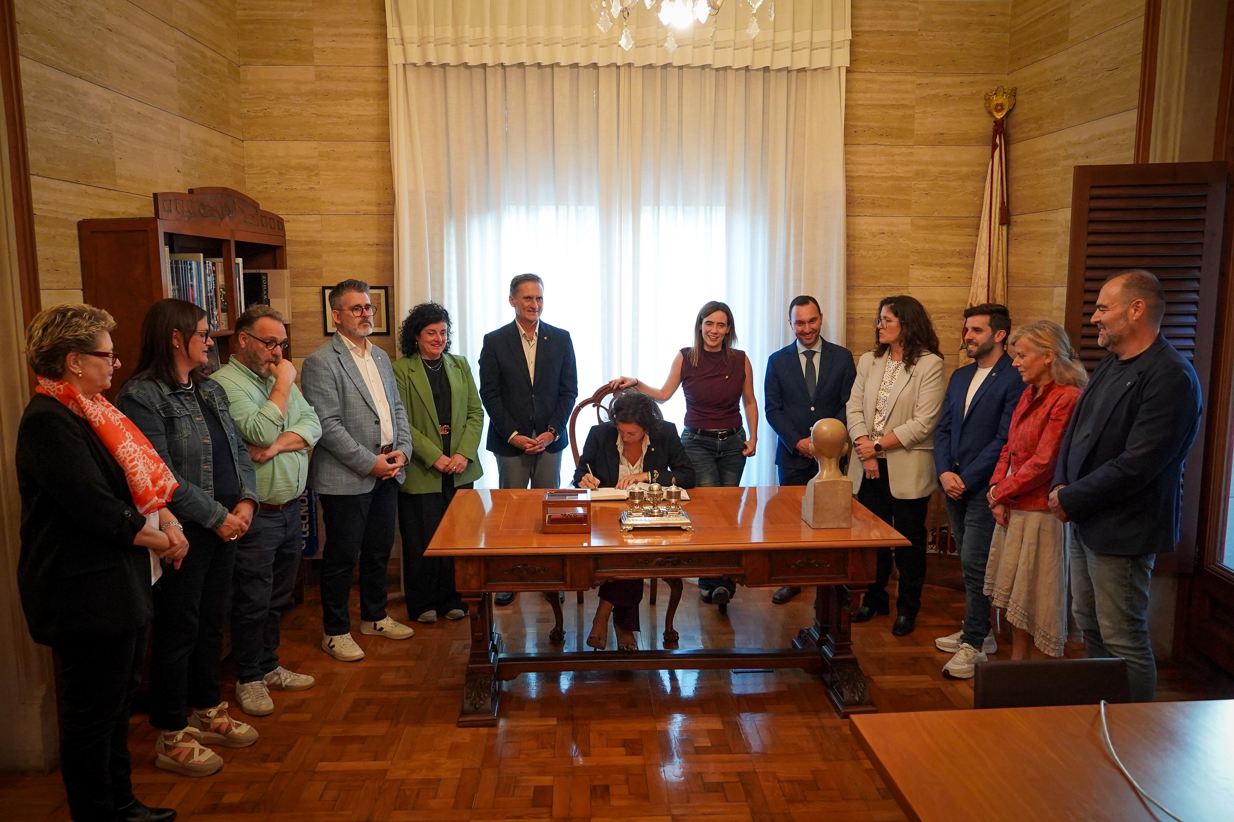 La consellera ha visitat la planta noble del palau municipal, ha signat al llibre d'honor de l'Ajuntament i ha mantingut una reunió de treball amb l'alcaldessa i altres membres del Govern de Reus.
