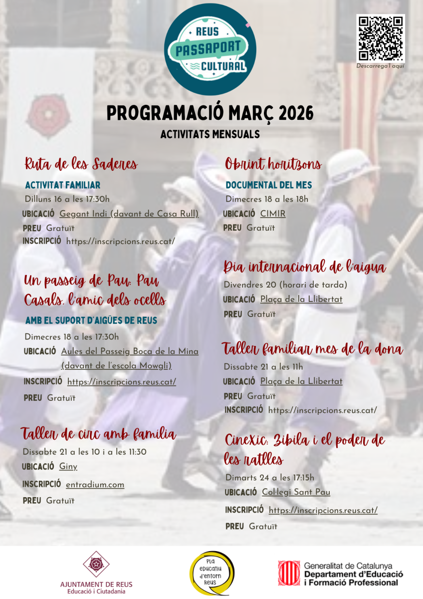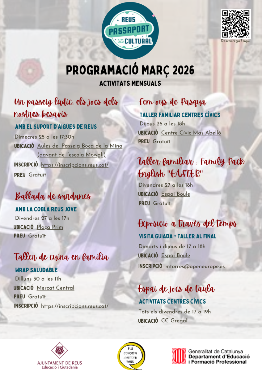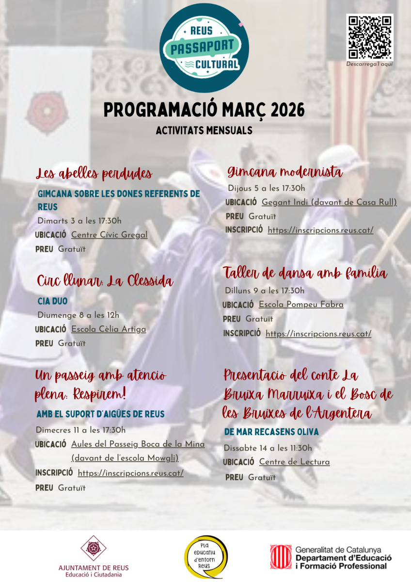 El Passaport Cultural és un projecte de l’Ajuntament de Reus que crea oportunitats educatives, d’acreditació i reconeixement social per a aprenentatges fets fora de l’escola. La idea és capturar i divulgar la potència educativa del nostre territori.